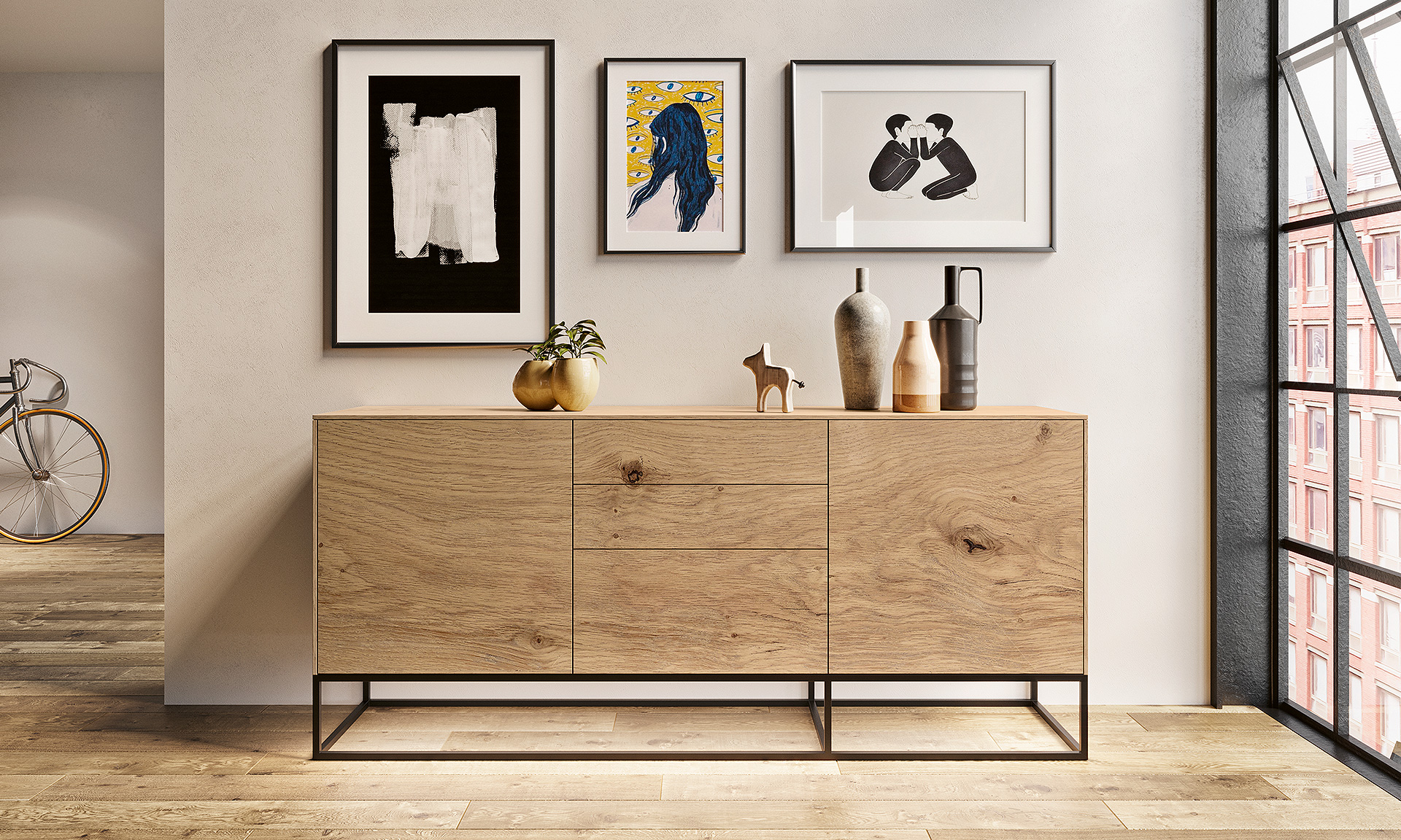 - Enfilade 3 portes 2 tiroirs intérieurs L.182 H.81 P.43 cm – Option LED sur pied